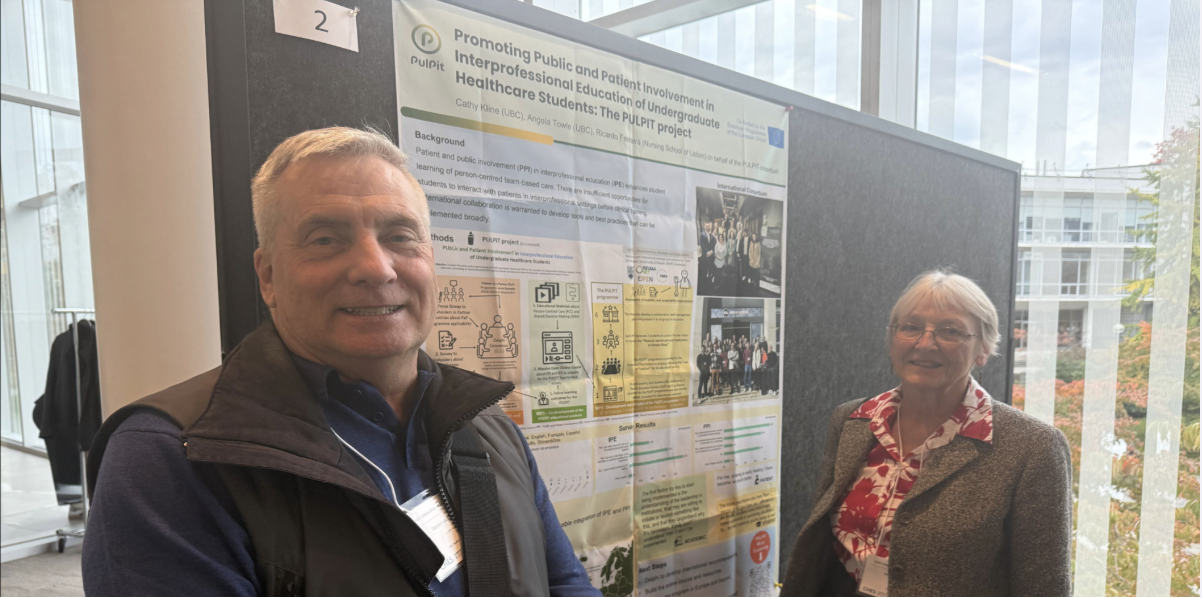 On October 22nd, Darren Lauscher and Angela Towle presented the PULPIT project at the UBC Faculty of Medicine’s Celebration of Scholarship. The PULPIT project aims to improve the authenticity of undergraduate interprofessional education by actively involving patients in teaching and learning.