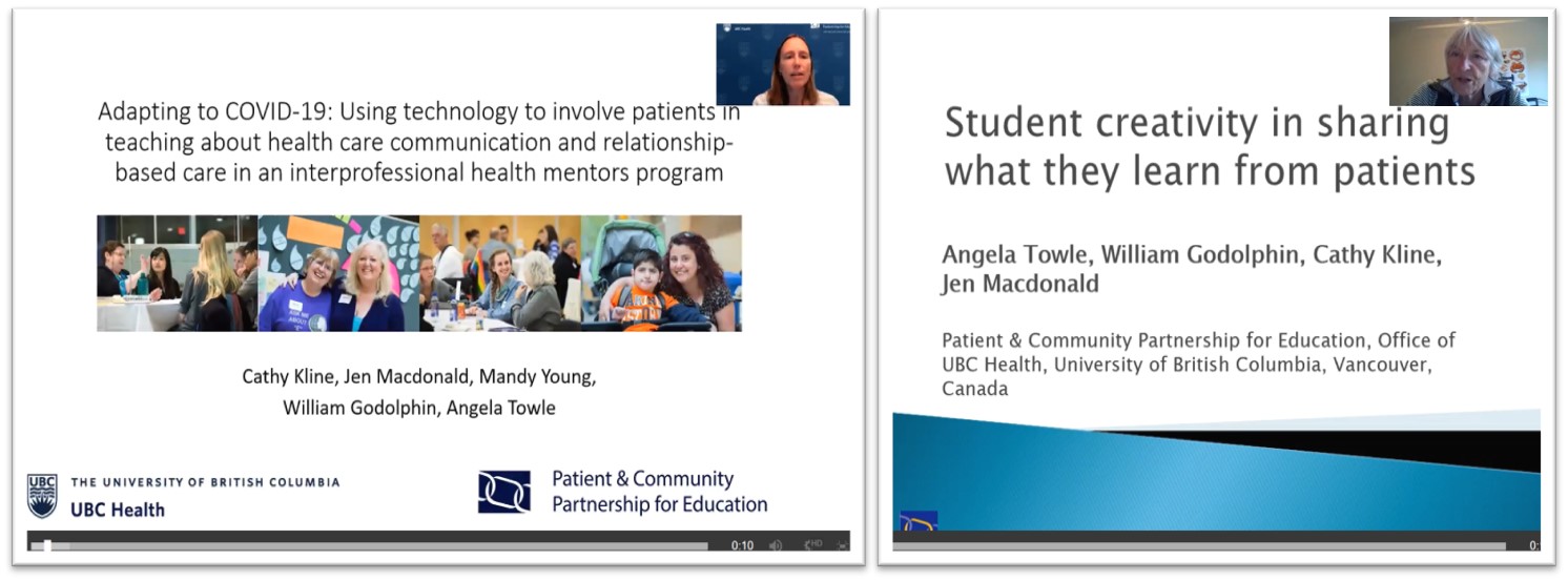 Angela Towle and Cathy Kline presented the UBC Health Mentors program at the International Conference on Health Care Communication in October. Their two talks showcased how the Health Mentors program was adapted for online delivery during the pandemic and how the creative visual works of students and mentors at the virtual symposium are valuable tools for teaching and learning.