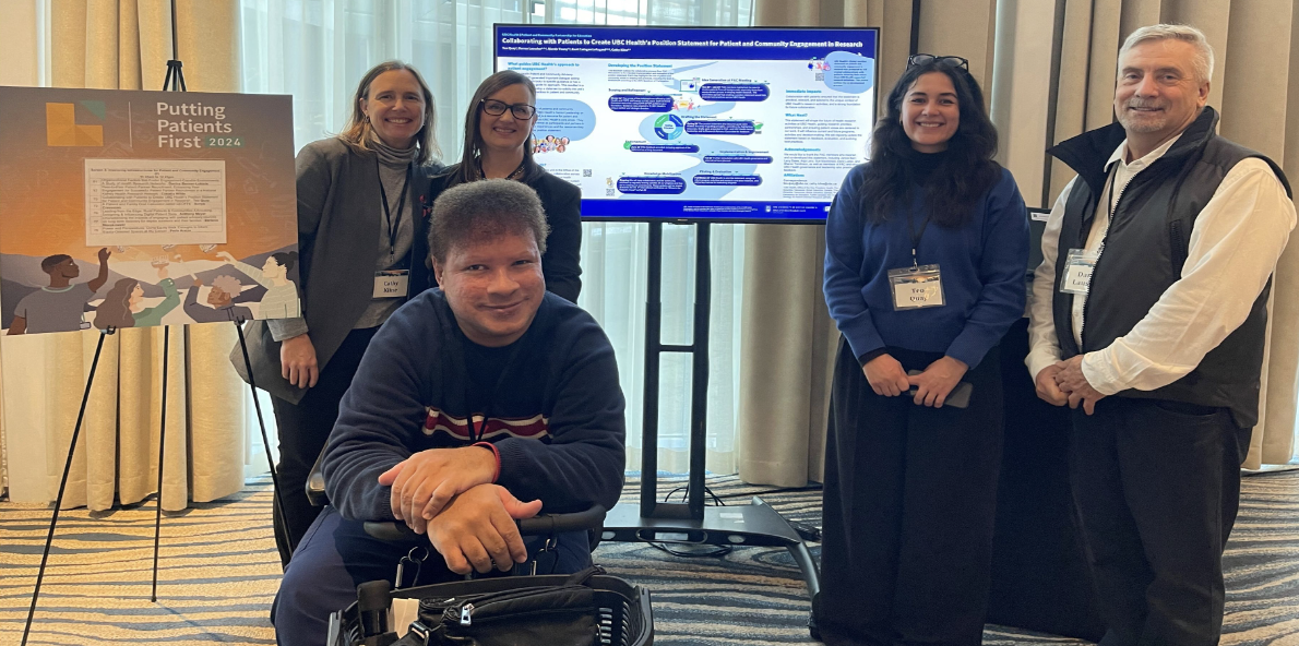 On November 14th, Cathy Kline, Darren Lauscher, Kent Loftsgard, Teo Quay, and Mandy Young presented a poster at the Putting Patients First 2024 conference put on by the BC Support Unit. Over 500 people participated in-person and online. The poster showed the process for co-developing the UBC Health Position Statement on Patient Engagement in Research with the Patient & Community Advisory Committee (PAC).