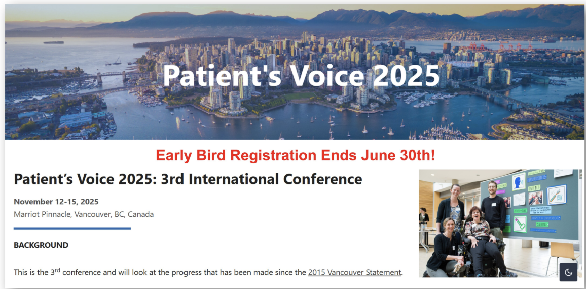 Join delegates from around the world for the 3rd international conference on, ‘Where’s the patient’s voice in health professional education?’ November, 12-15th, 2025 at the Marriot Pinnacle, Vancouver! The conference will showcase work being done to involve patients in health professional education from 13 countries.